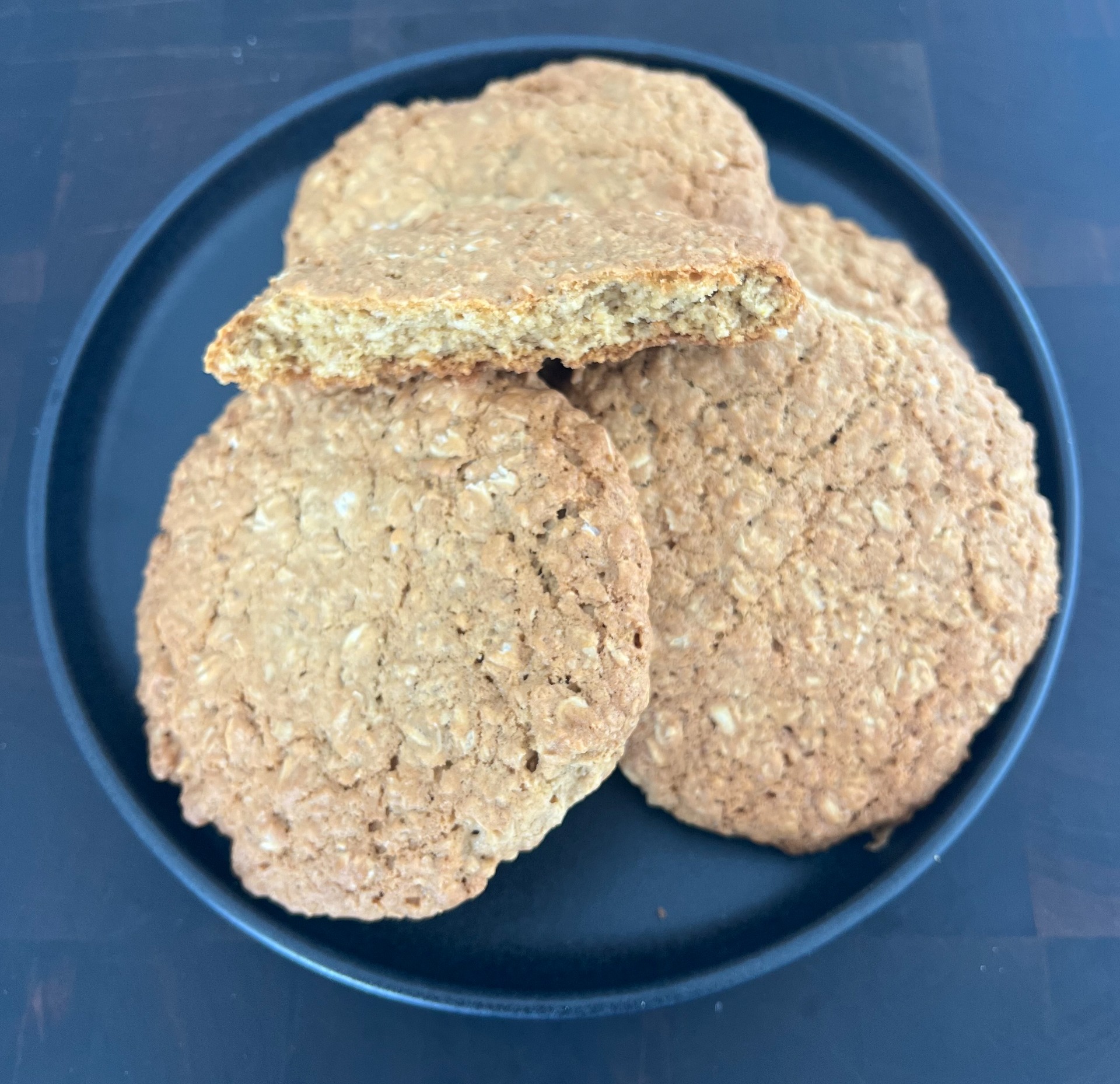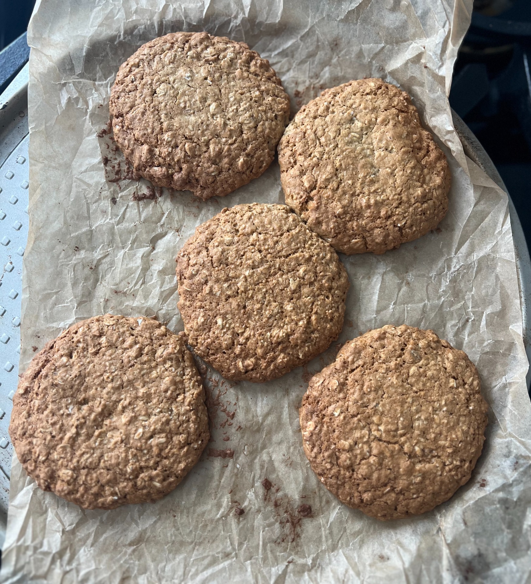 - Étape 4 : Répartir en 5 grosses boules de pâte sur une plaque à biscuit et les tapoter avec un doigt mouillé pour les aplatir - La recette donne 5 gros biscuits environ - À votre convenance