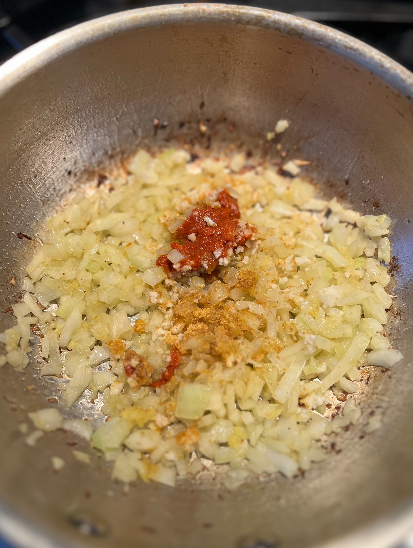 - Faire revenir les oignon hachés à feu moyen environ 8 minutes en brassant régulièrement pour les attendrir