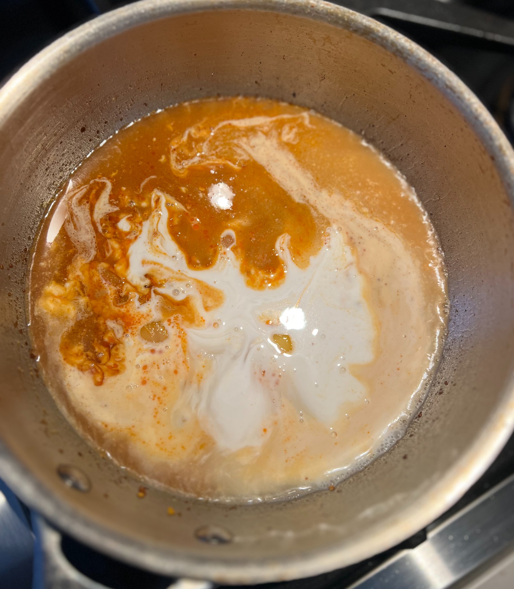- Ajouter le bouillon de poulet, le sucre et la crème un peu plus tard