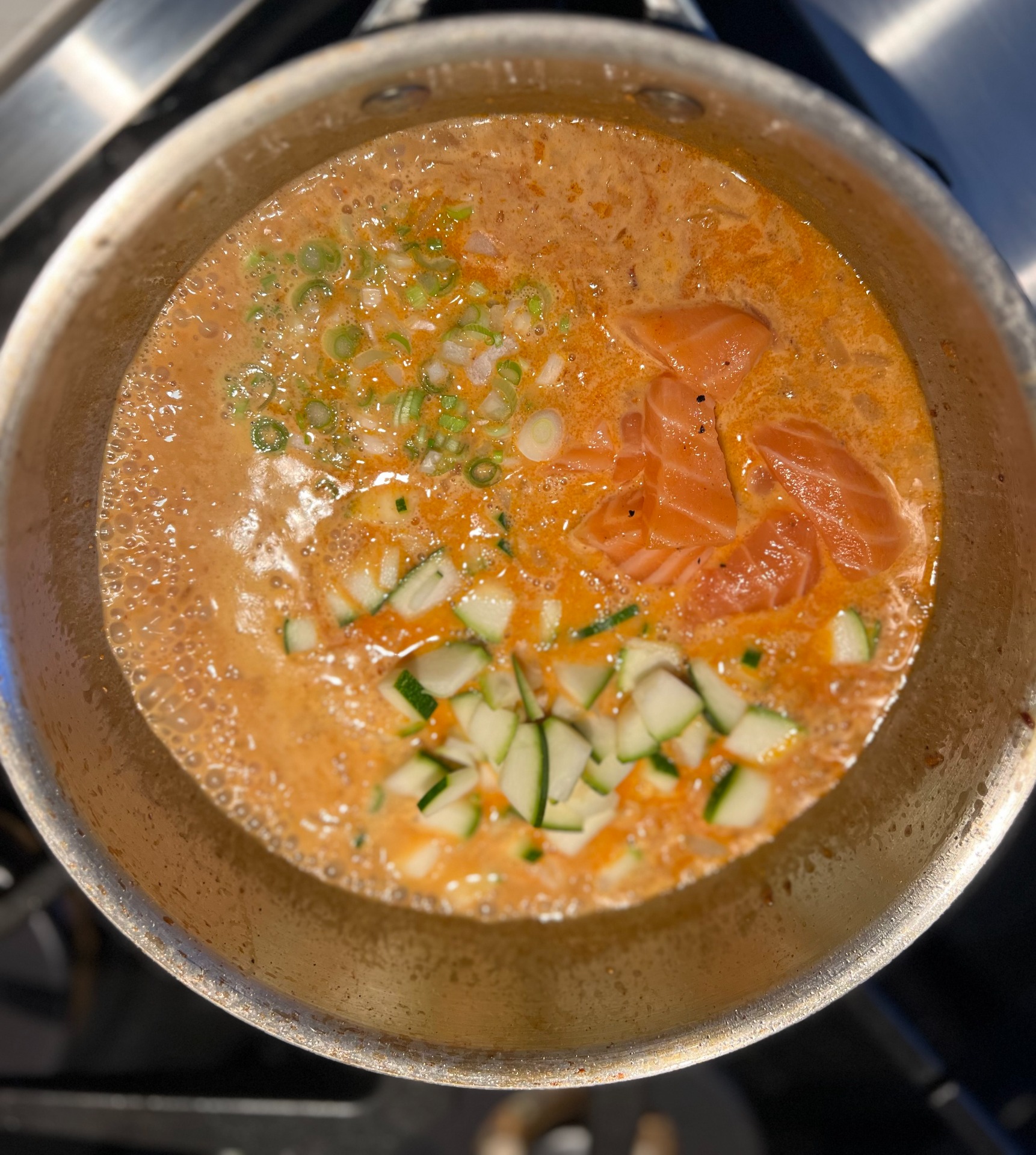 - Ajouter les tomates, le poireau et les courgettes 6 à 7 min.