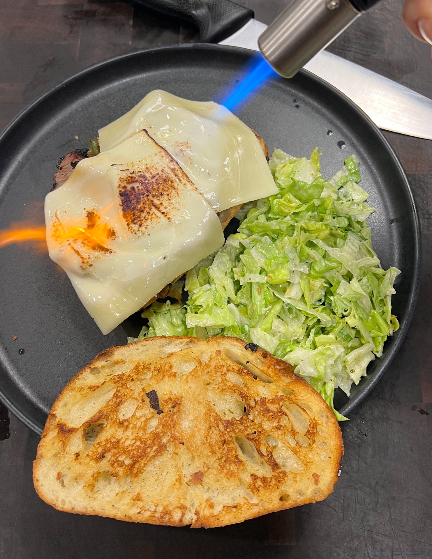 - Monter votre sandwich et griller le fromage au chalumeau ou à Broil au four